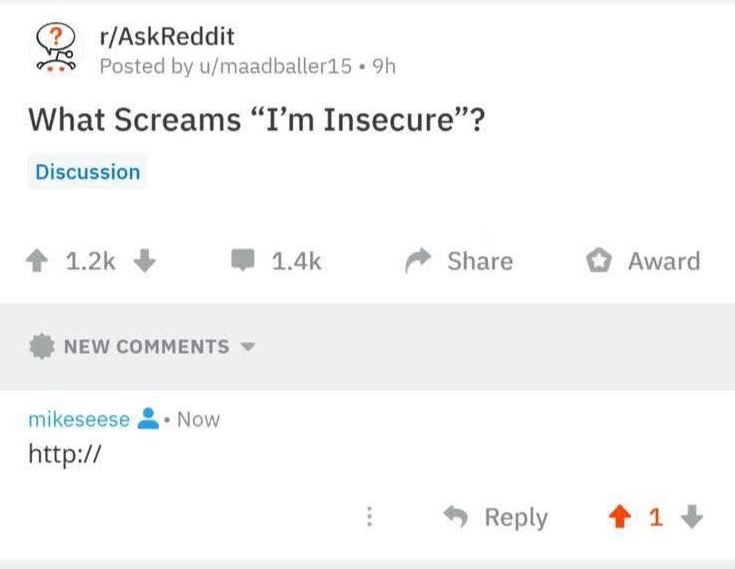 I’d say asking “What Screams I’m Insecure”