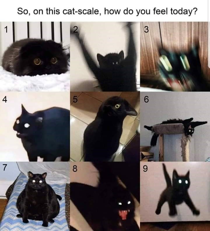 Home Current Cat Levels 6 years ago 6 years ago Current Cat Levels by Andre Poreskin 6 years ago6 years ago Right now I'm about a 7. At work I'm either a 3 or an 8... Post PaginationPrevious PostPreviousNext PostNext Cats, imageLike it? Share with your friends! 11