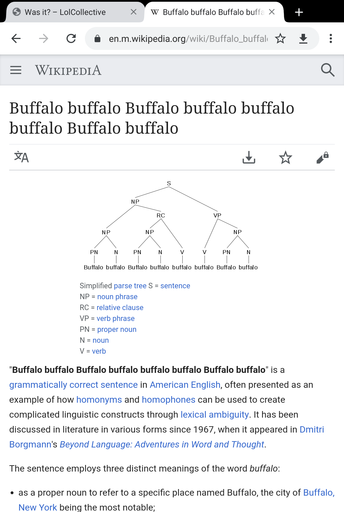 Home As a non-native English speaker I don't understand this... Do any of you? 6 years ago 6 years ago As a non-native English speaker I don’t understand this… Do any of you? by anders 6 years ago6 years ago Linkhttps://en.m.wikipedia.org/wiki/Buffalo_buffalo_Buffalo_buffalo_buffalo_buffalo_Buffalo_buffalo#targetText=The%20sentence%20employs%20three%20distinct,or%20%22to%20baffle%22%3B%20and Post PaginationPrevious PostPreviousNext PostNext imageLike it? Share with your friends! 10
