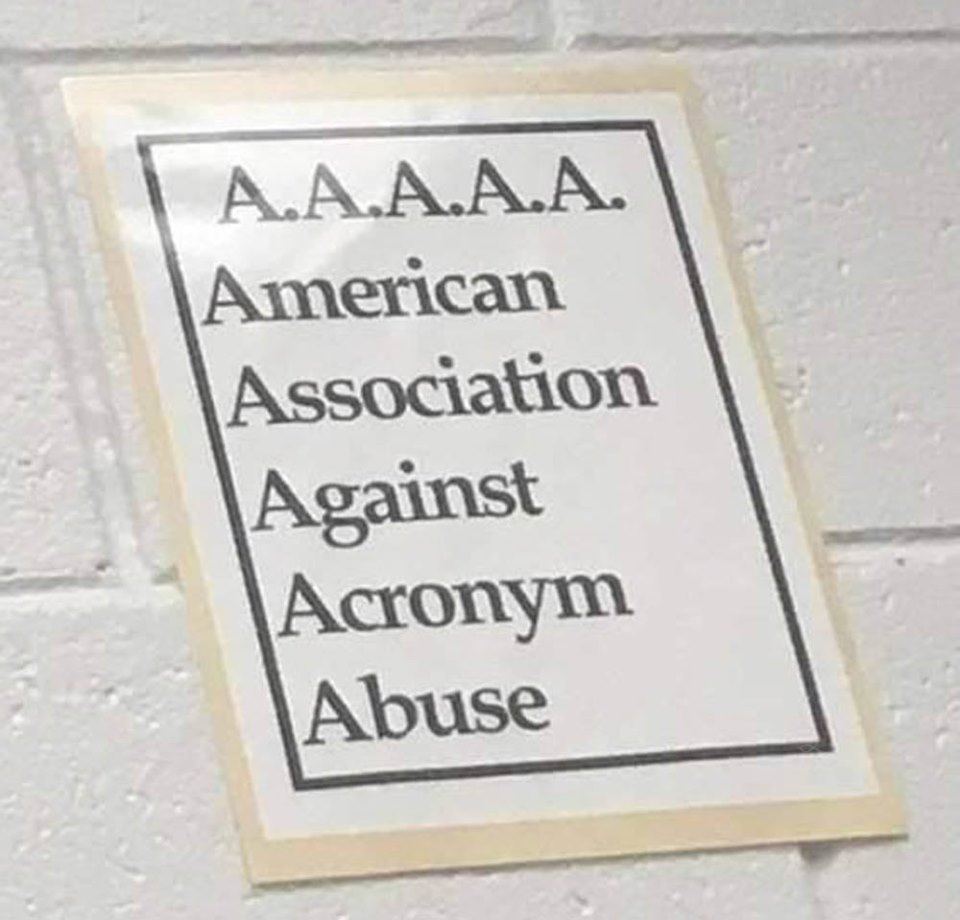 Home Beware abusive acronyms 6 years ago 6 years ago Beware abusive acronyms by Gregor 6 years ago6 years ago Post PaginationPrevious PostPreviousNext PostNext imageLike it? Share with your friends! 11